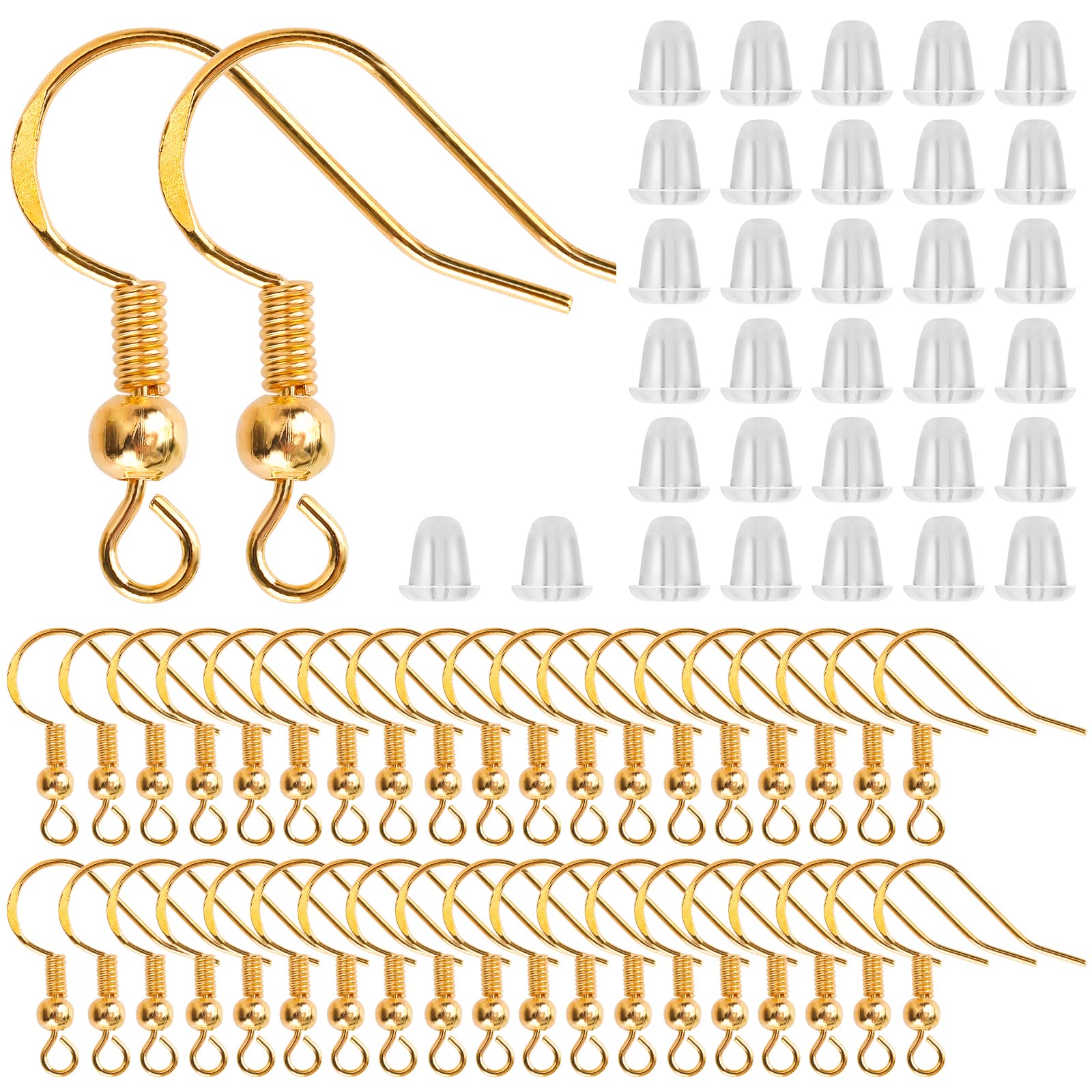 Yolev 200PCS Gold Earring Hooks Set, Hypo-allergenic Earring Hook DIY Jewelry Making Earring Making Supplies with Clear Silicone Earring Backs Stoppers(Gold)