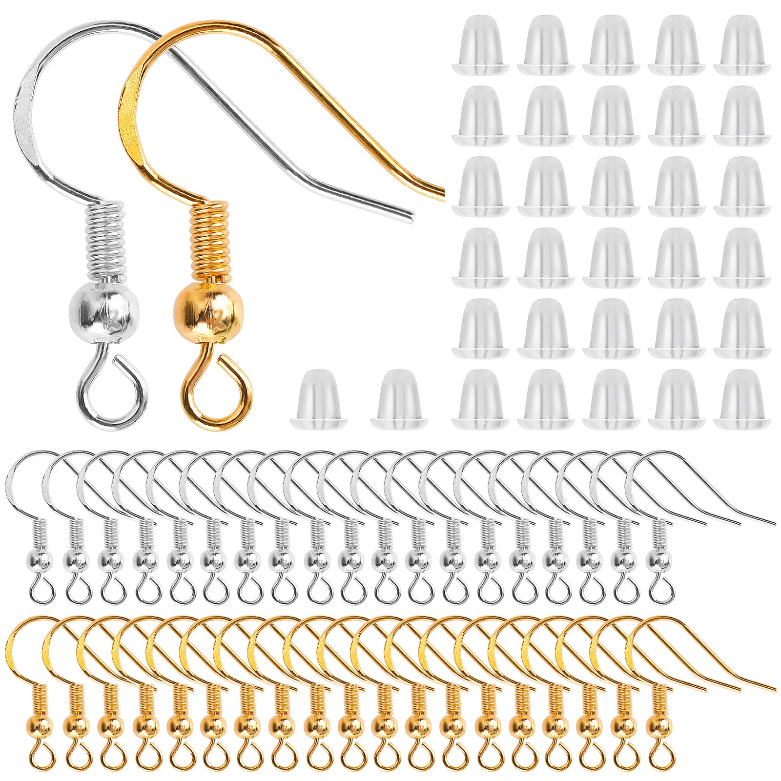Yolev 200PCS Gold Silver Earring Hooks Set, Hypo-allergenic Earring Hook DIY Jewelry Making Earring Making Supplies with Clear Silicone Earring Backs Stoppers