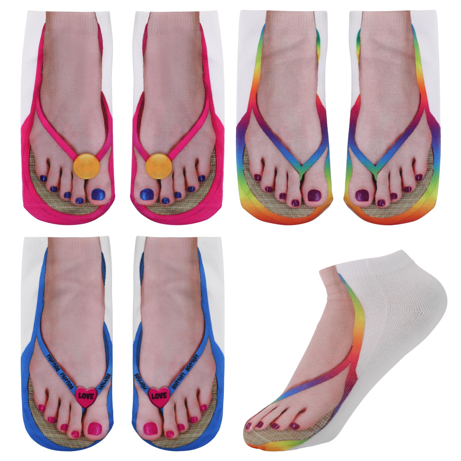 Yolev 3 Pairs Of Flip Flops Socks 3D Fun Print Socks Nail Art Print Novelty Ankle Socks Casual Personalized Unisex Cotton Socks
