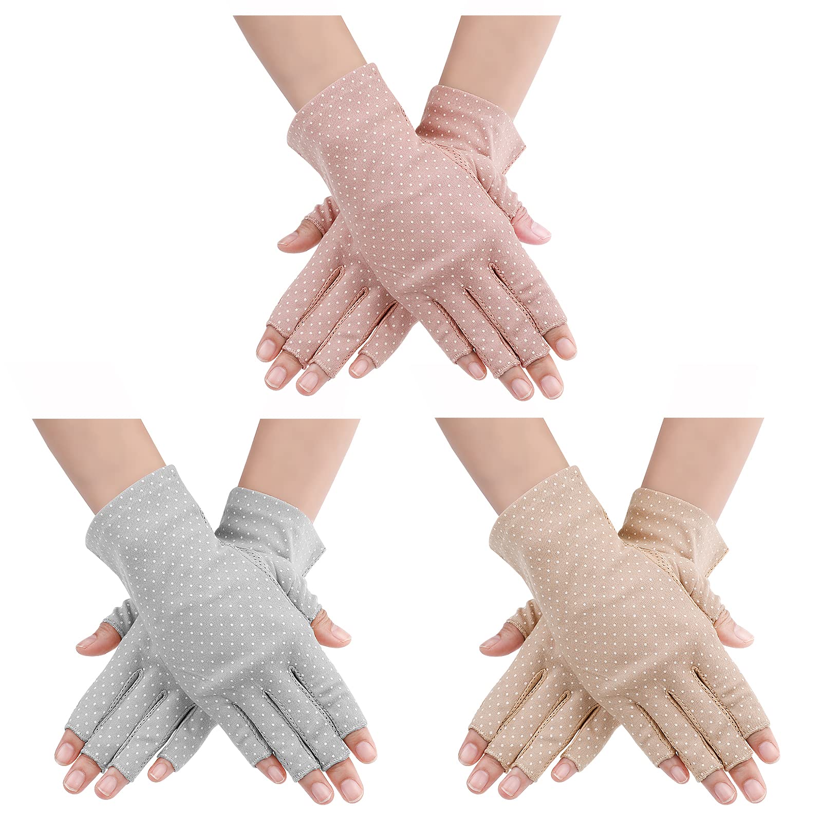 Yolev 3 Pairs Sunblock Fingerless Gloves for Women Non-slip UV Sun Protection Gloves Driving Gloves for Summer Outdoor