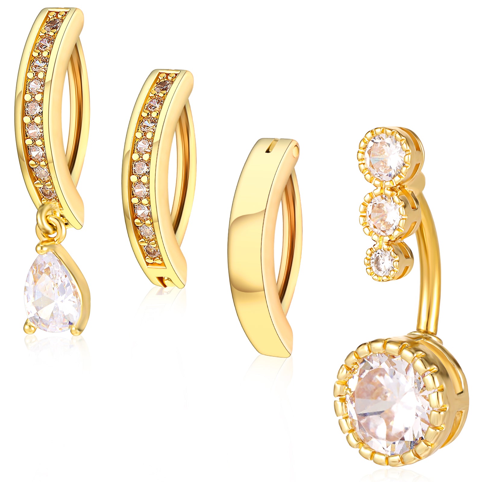 Yolev 4 Pcs Belly Button Ring for Women 14G Short Opal Navel Rings Clicker Belly Button Ring Bar Piercing Surgical Steel Cute Belly CZ Reverse Navel Rings Dangle Body Belly Piercing Jewelry(Gold)
