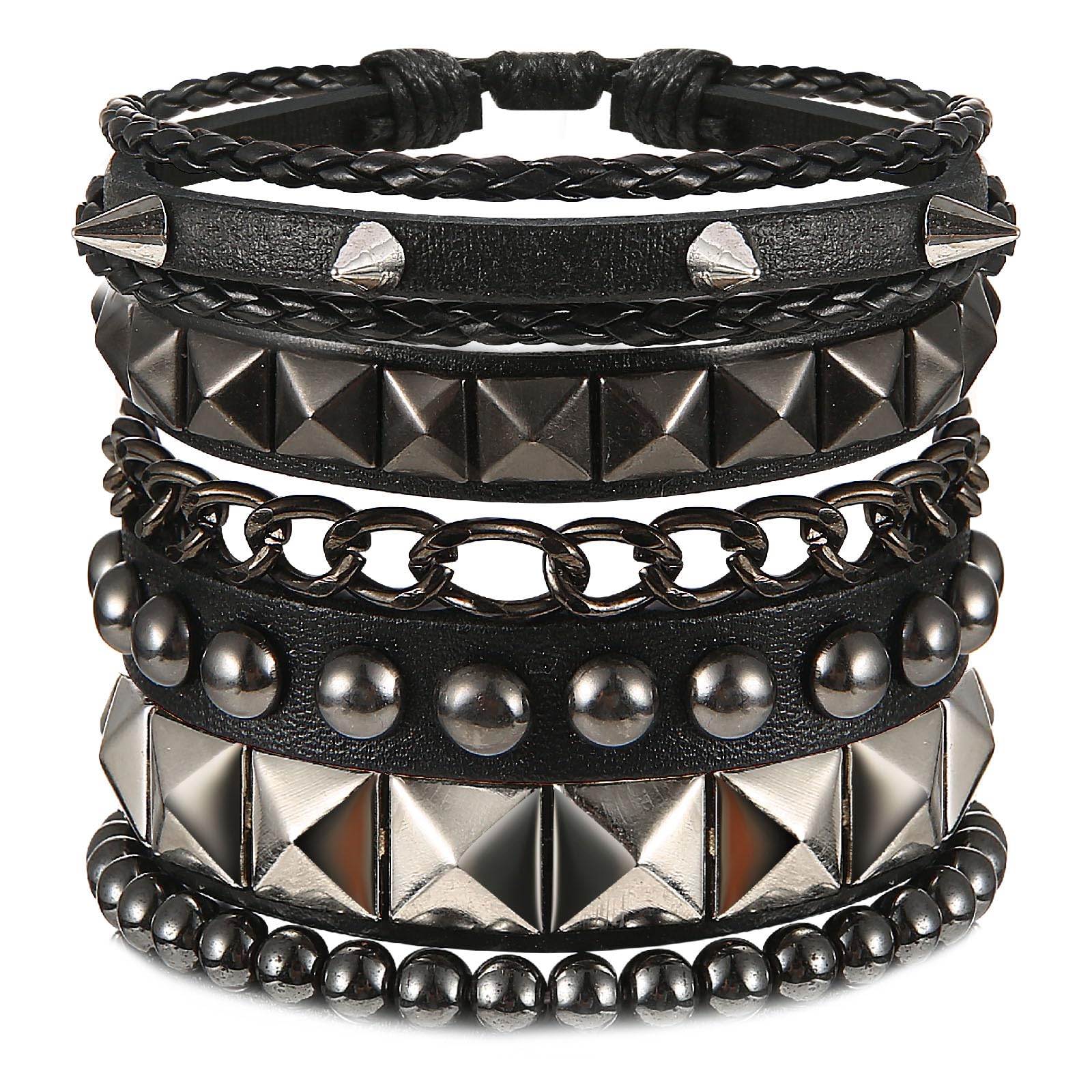 <br>Product name: Leather bracelet set<br>Product style: European and American<br>Product color: black<br>Product material: PU<br>Single product size: from top to bottom, No. 1 has a circumference of 18cm/7.08in-26cm/10.23in, No. 2 has a circumference of 22cm/8.66in*1cm/0.39in, No. 3 has <br>a circumference of 20cm/7.87in, No. 4 has a circumference of 22cm/8.66in *3.5cm/1.37in<br>Product List: 4pcs Leather Bracelet Set<br>Product use: jewelry