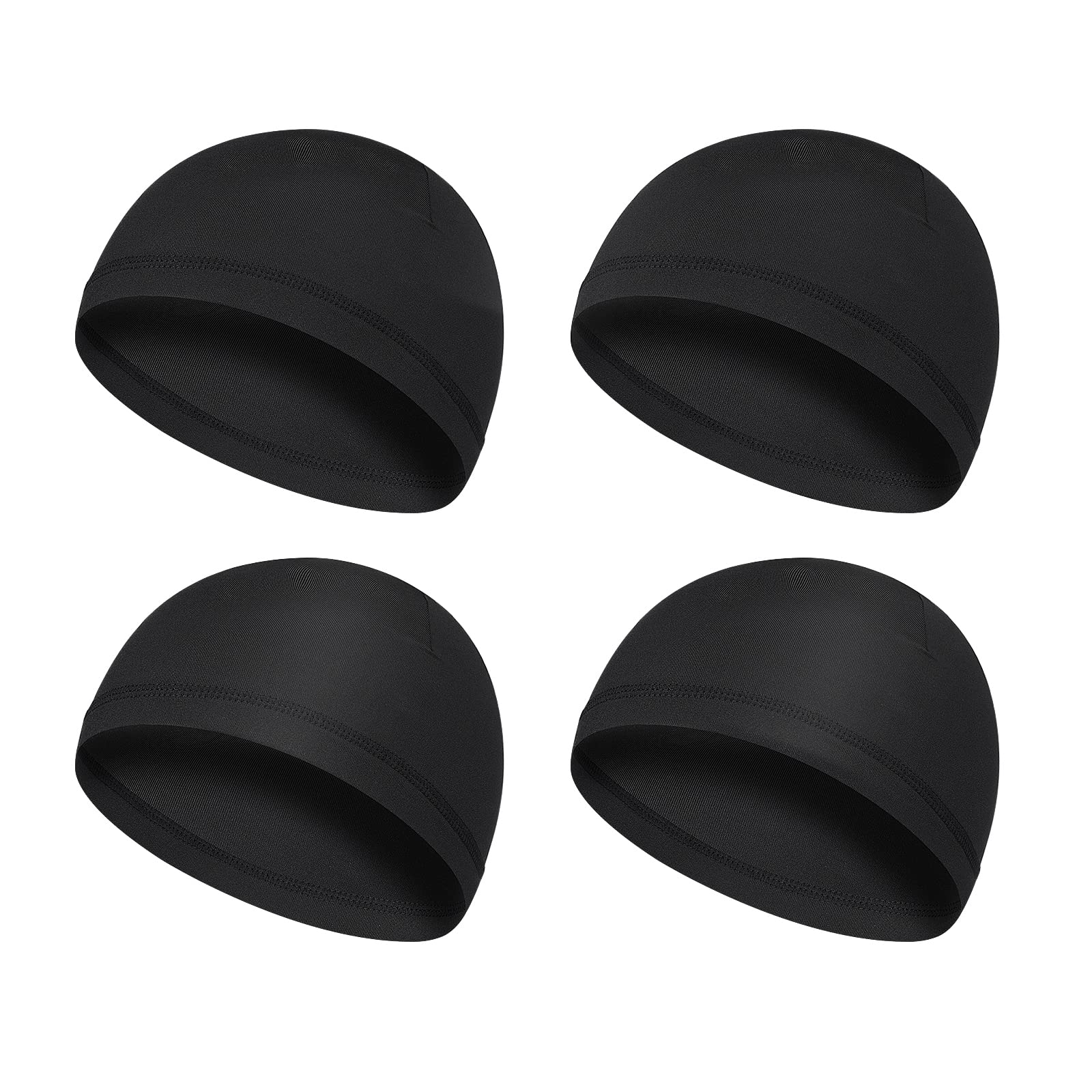 Yolev 4 Pieces Men Skull Caps Soft Cotton Beanie Sweat Wicking Helmet Liner Cycling Running Hat for Men Women Black