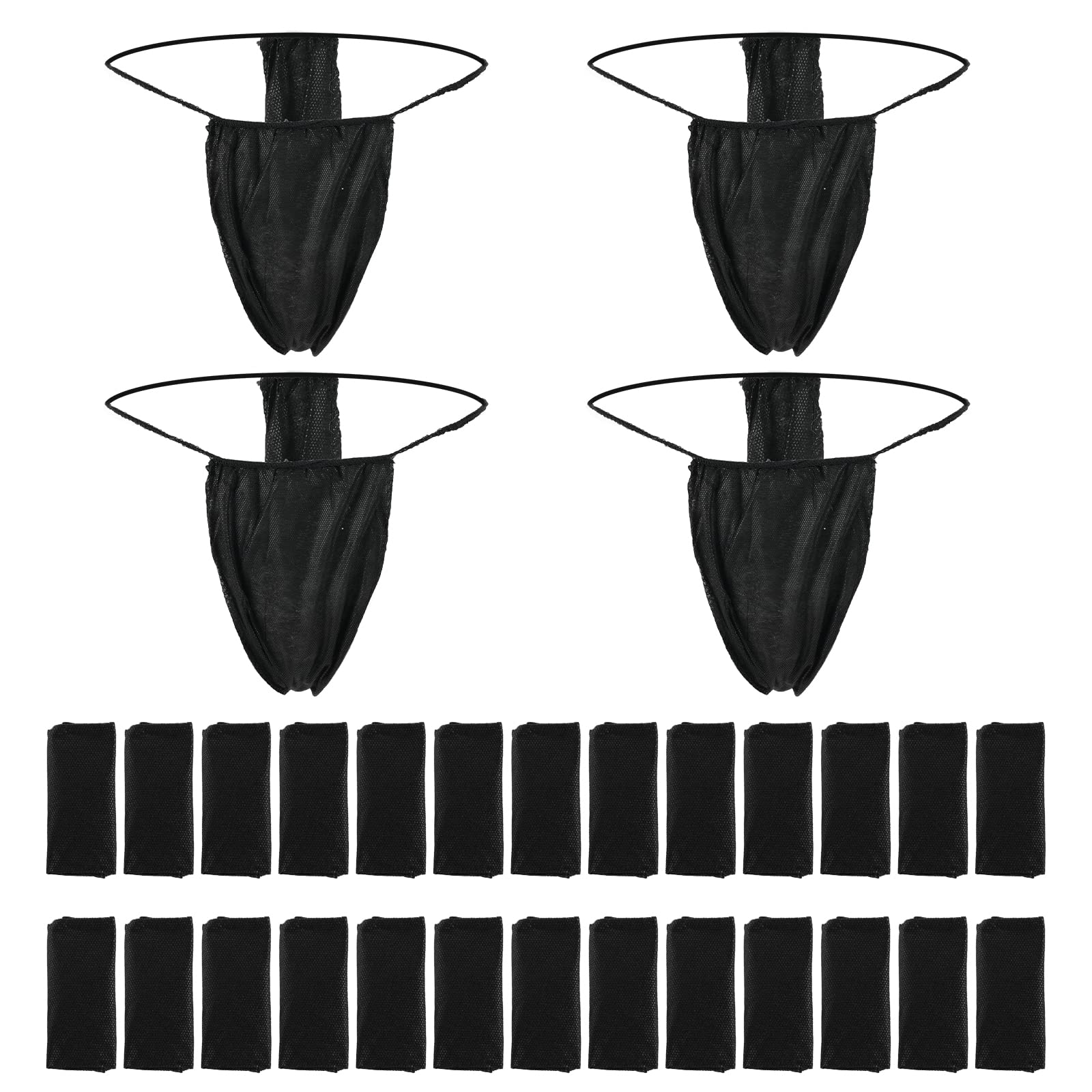 Yolev 50 Pieces Disposable Thong Panties Non-woven Thong Disposable T Strap Thong Disposable Bikini Panties for Spray Tanning and Spa Black