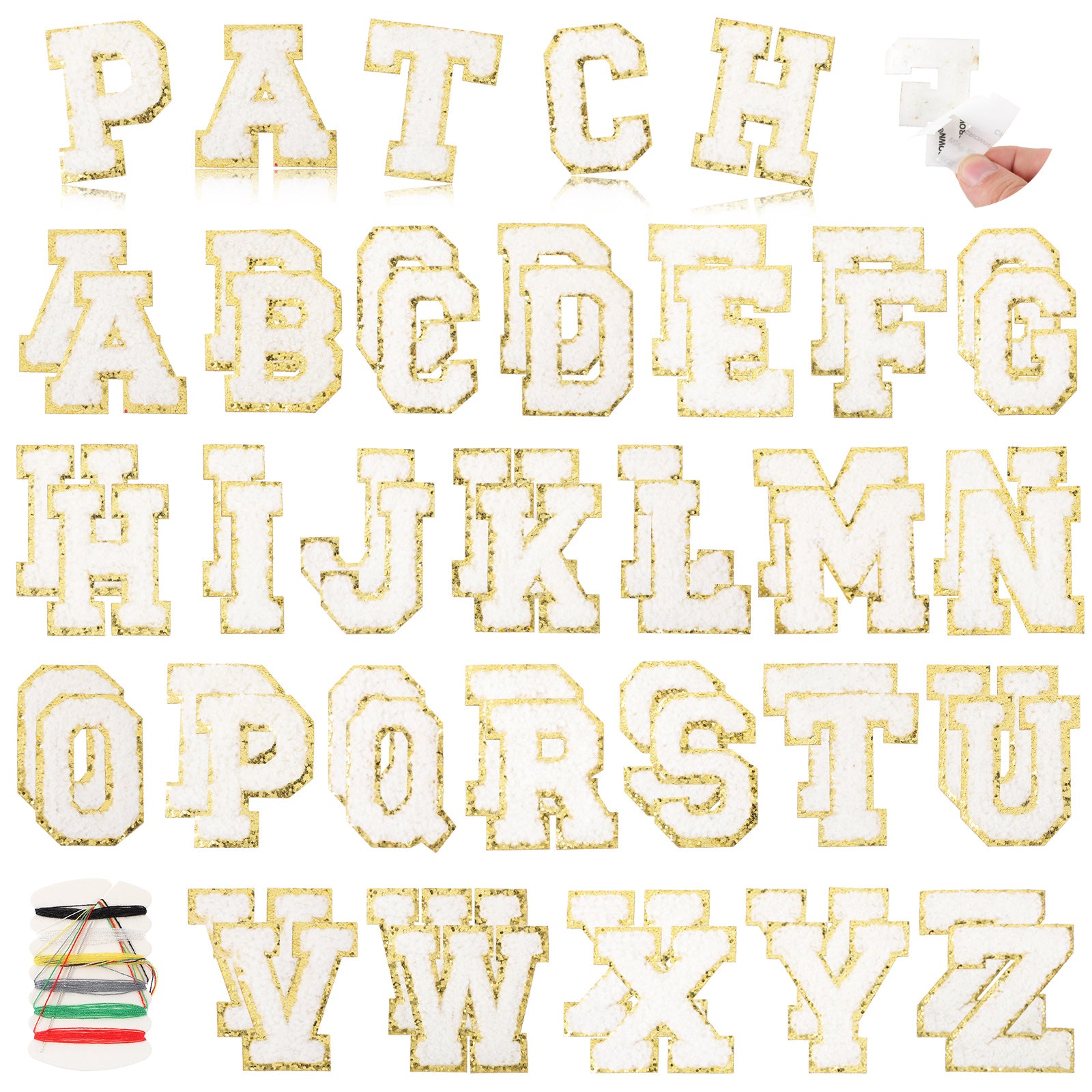 Yolev 52Pcs Self-Adhesive Iron on Letters Chenille Letter Patches Numbe Patches Self Adhesive Chenille Patches Chenille Embroidered Patch Embroidered Patch for Clothing