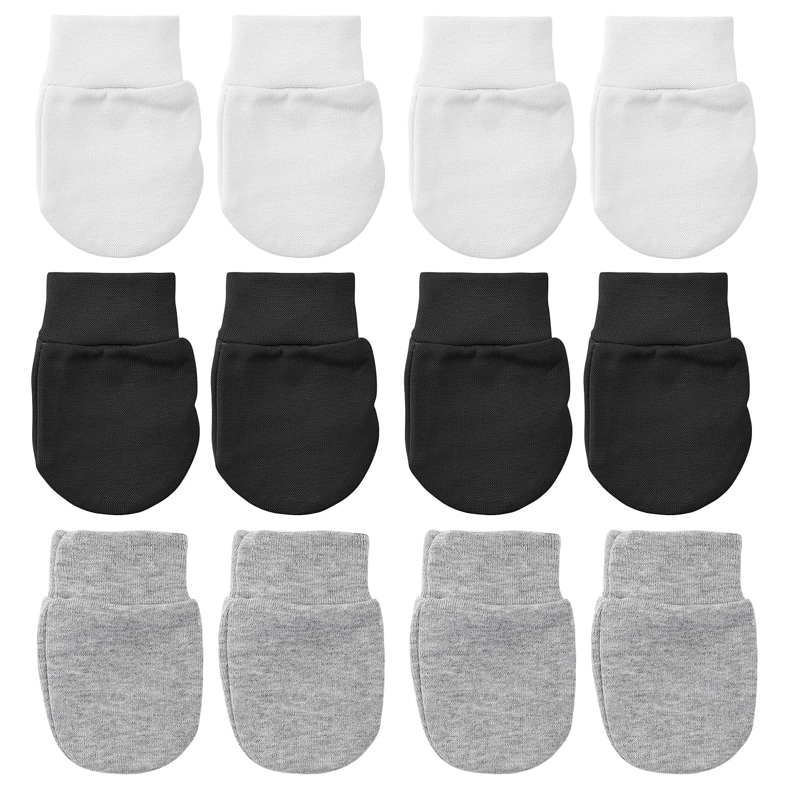 Yolev 6 Pairs Newborn Baby Mittens Infant Toddler Gloves Soft Cotton No Scratch Mittens Gloves for 0-6 Months Baby Boys Girls (White+Light Gray+Black)