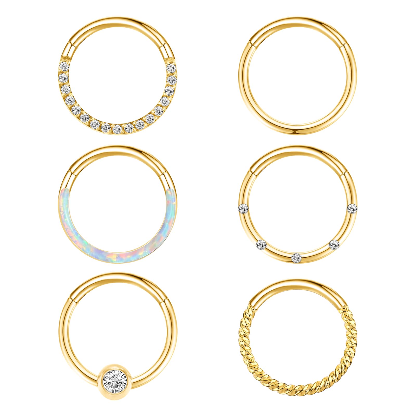Yolev 6 Pcs Gold Nose Ring Hoop for Women18g Stainless Steel Gold Nose Hoop 8mm Septum Rings Piercing jewellery Cartilage Earrings Gold Conch Hoop Tragus Cartilage Earrings Helix Hoop 8mm
