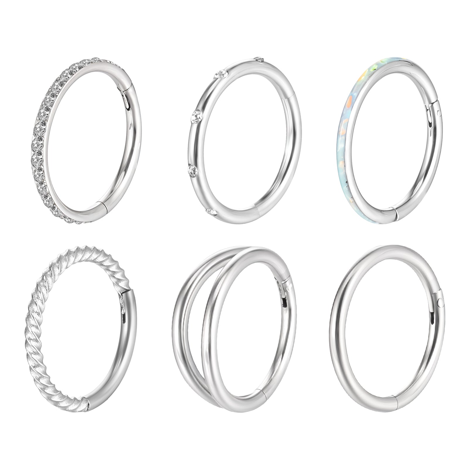 Yolev 6 Pcs Nose Rings Hoops Silver Double Hoop Nose 18g Surgical Steel Cz Septum Rings Clicker Hinged Segment Lip Helix Cartilage Conch Daith Earrings Body Piercing Jewelry For Women Men 8mm