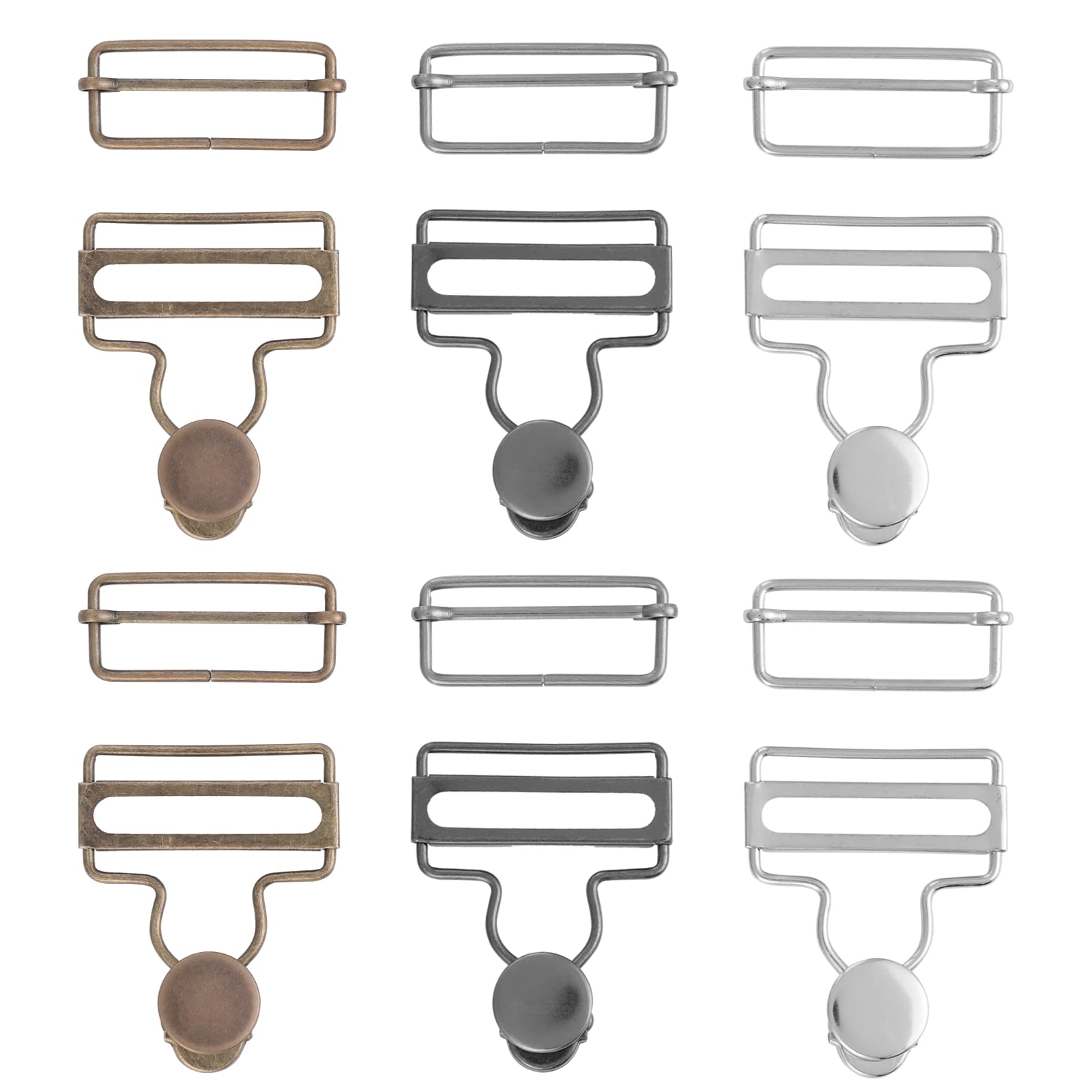 Yolev 6 Sets Metal Brace Buckles Dungaree Buckles with Rectangle Slider Fasteners for Suspenders, Belts, Handbags, Jackets, Work Clothes