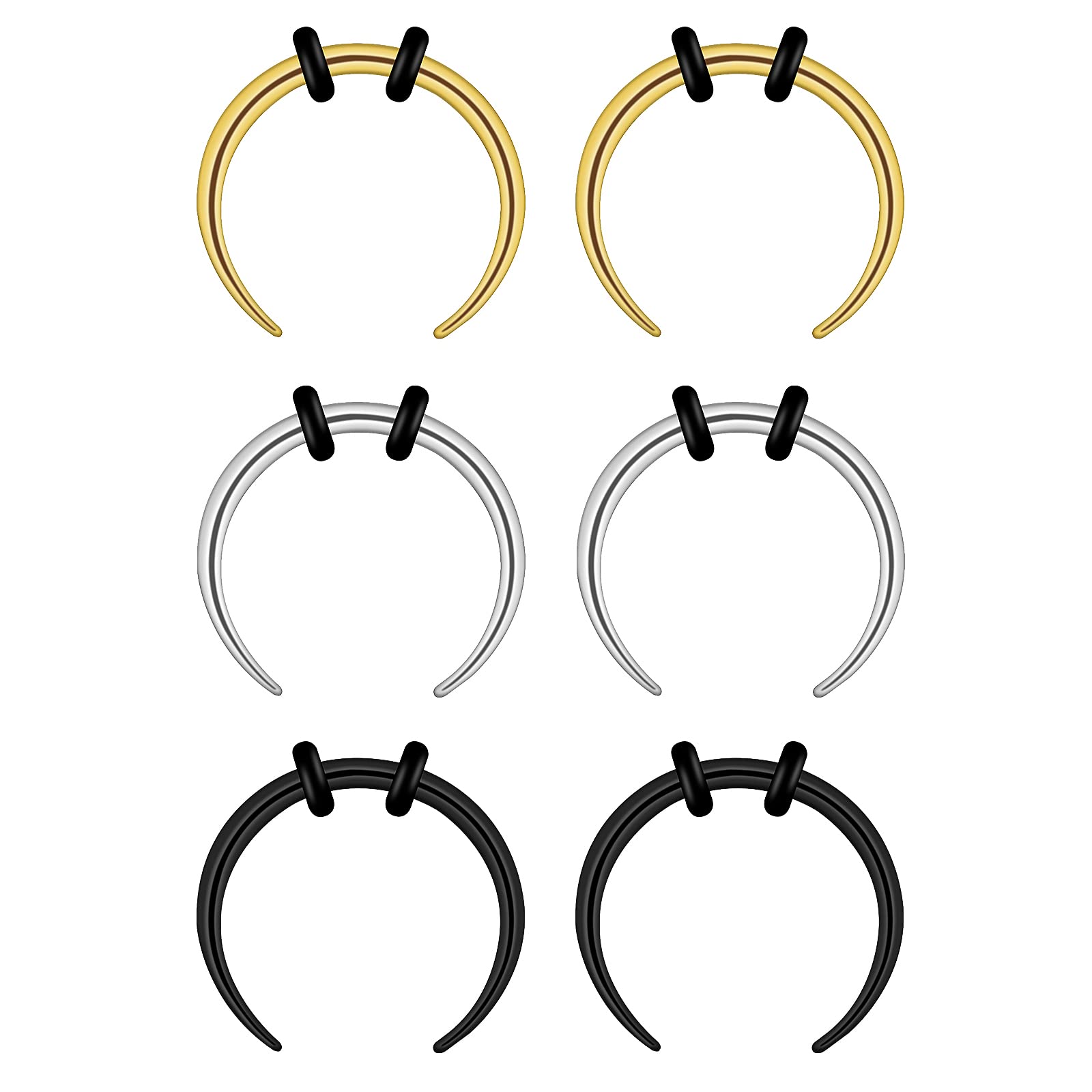 Yolev 6Pcs 16G Pincher Septum Rings C Shape Buffalo Stainless Steel Horseshoes Nose Ring Silver Black Gold Septum Rings Septum Jewelry