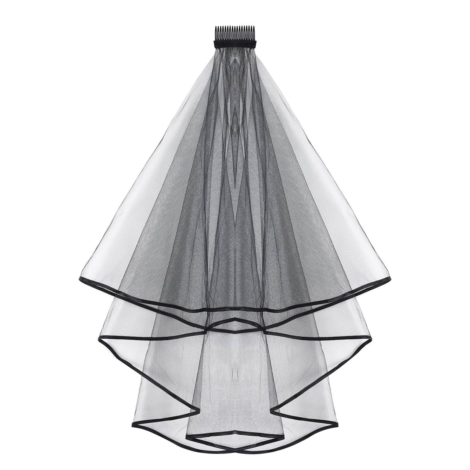 Yolev Black Lace Veil Wedding Bridal Veil with Comb 2 Tier Tulle Bridal Tulle Veil with Comb for Halloween Party