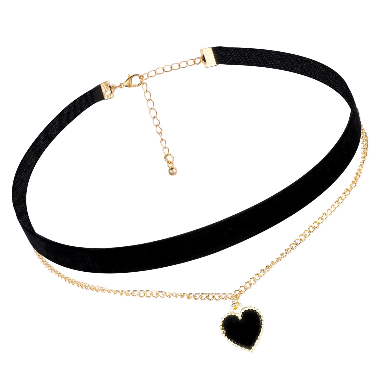 Yolev Black Velvet Choker Necklace Elegant Heart Pendant Chokers Necklaces Adjustable Layered Necklaces Gothic Jewelry Accessories for Women Girls