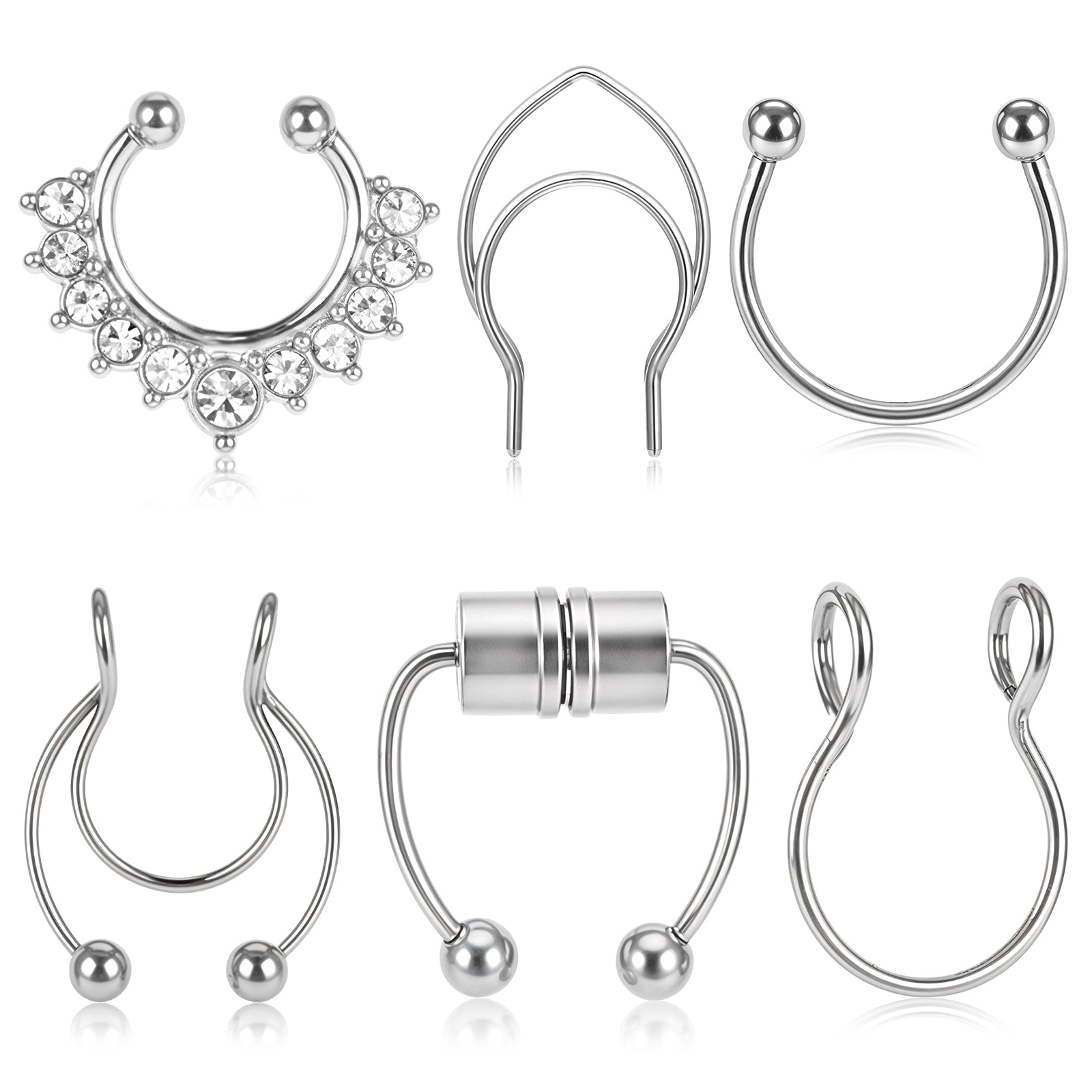 Yolev Fake Septum Piercing Fake Septum Ring Faux Septum Nose Rings Fake Septum Fake Nose Ring Clip On Septum Nose Ring Faux Septum Piercing Clip on Septum Ring Non Piercing Silver