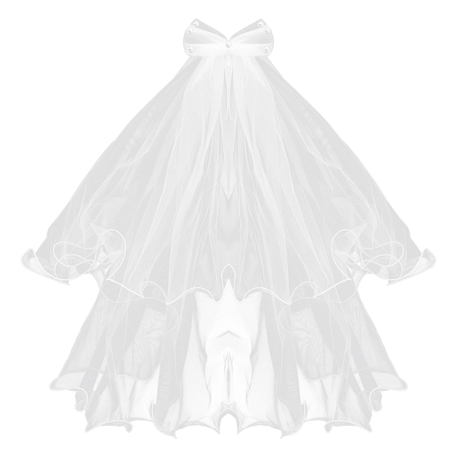 Yolev Girls First Communion Veil with Bowknot Wedding Bridal Veil White Headpiece Bachelorette Party Decorations for Bridal Shower Wedding First Communion